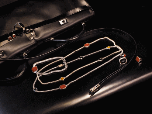 古董老爷车与摩托车带你驰骋在布满塔特萨尔格纹的包袋、高级成衣和配饰的绵延景观里,领略七十年代至今的风情万种。
