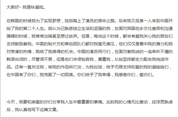 但是当自己出名之后,奶奶那边的亲戚都会来找自己,秋瓷炫也只是打钱让爸爸捎给奶奶,从来不会去见她,因为她觉得自己这样做会对不起妈妈,也正是因为这样,秋瓷炫内心特别想离开韩国。