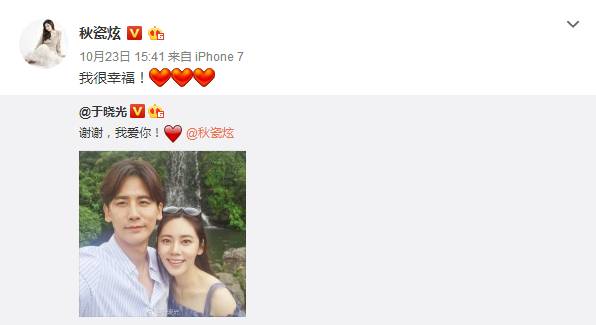 在中国,秋瓷炫不仅拥有了自己的事业,还遇到了现在让大家都很羡慕的另一半,于晓光,相差两岁的姐弟恋日子过成了蜜,2015年秋瓷炫就在微博公开了自己的恋情。