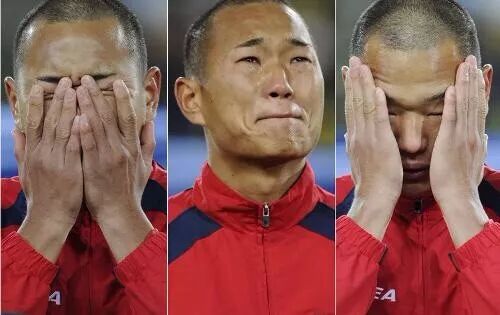 其实郑大世最令人印象深刻的“哭”,不是来自节目中的流泪,而是在2010年南非世界杯上就一哭成名。在世界杯G组首轮的一场焦点战役中,朝鲜与五届世界杯冠军巴西相遇,赛前奏国歌。在朝鲜国歌想起时,郑大世早已泪流满面。这一场景被誉为当届世界杯最令人难忘的时刻↓↓↓