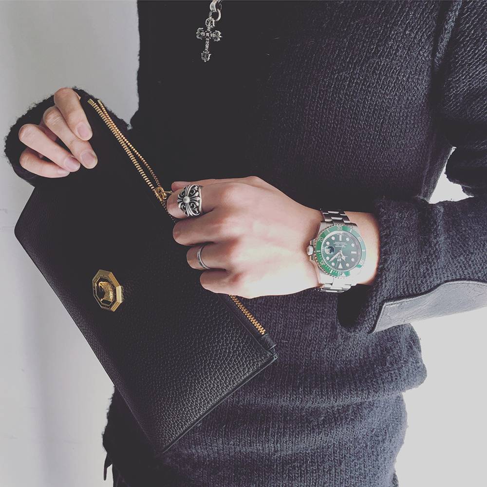 A:克罗心的戒指和项坠、劳力士水鬼、Stefano Ricci手包,每件价格都要到5位数,这位小哥一看就是土豪。