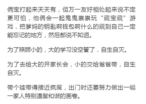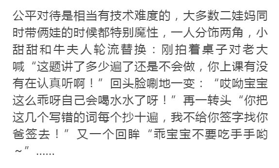 今天跟大家分享一篇轻松的文章,作者用接地气又诙谐的语言,再现了第一批生二胎的妈妈们过上了什么样的日子,有什么魔性的带娃方式,简直不要太形象~