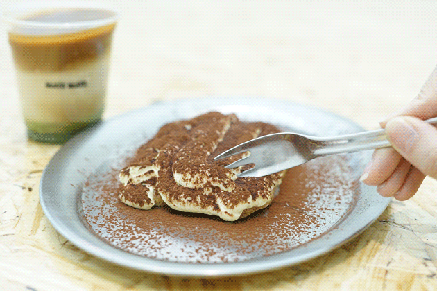 比一般的提拉米苏扁多了,像薄饼一样,但味道真的不错,一口同时吃到蛋糕和咖啡味的奶油。