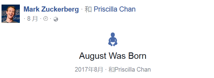 在生下大女儿Max前,妻子普莉希拉·陈曾三次流产,夫妻俩从没奢望过能再生一个。但是,第二个孩子却幸运地降临了。和大女儿出生时一样,他们也给小八月写了封信: