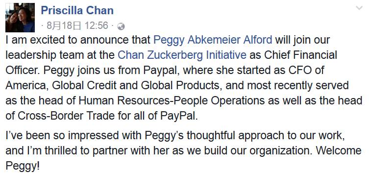 在facebook上发现,29日生孩子的普莉希拉,8月18日还在帮她和小扎建立的慈善机构挖财务高管。