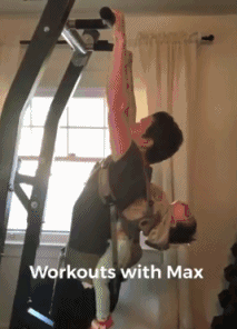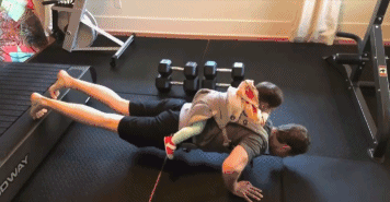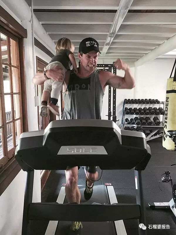 锤哥Chris Hemsworth就曾经扛着儿子,在跑步机上奋战。