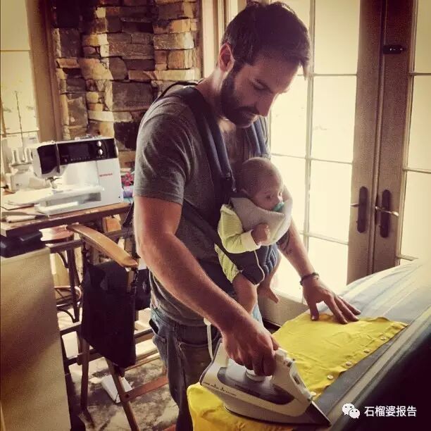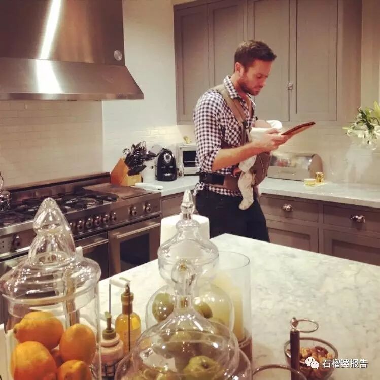 特别是娃只有几个月大的时候,爸爸把孩子挂在身上、让它别哭就行。(这是演员Armie Hammer。)