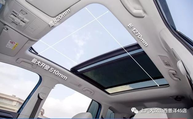 星空全景天窗,几乎覆盖整个车顶的全景天窗,面积超大,足有1.83㎡之多,是普通天窗的3倍,并配有电动遮阳帘及防夹功能,坐在车中可以将上方的景象一览无遗,暖暖的阳光进入车内,让车主能更好的沐浴在阳光下的温暖,同时还具有散热、除湿、防霉的作用。