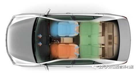 独立三分区温度控制,并集成了Clean Air空气净化系统功能,可有效过滤PM2.5。主驾/副驾以及后排都可以每档0.5的温度自由调节各自区域温度大小,满足各个乘坐区域客户的不同温度需求。系统会根据设定温度自动调节前后排出风量,后排乘客无需手动控制出风量