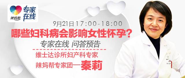 今天下午17:00-18:00我们特别邀请了维士达妇产科主任,专家孕育问答帮专家秦莉老师为辣妈们解答,辣妈们现在就可以点击“阅读原文”跟帖提问,届时专家讲给予详尽的解答。
