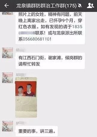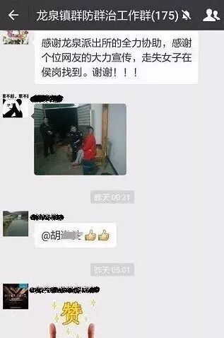 能快速的找回离家出走的怀孕妇女,龙泉派出所建立的“龙泉镇群防群治工作群”起到至关重要的作用,同时也得益于广大群众热心帮忙及侯家岗派出所民警的鼎力协助。
