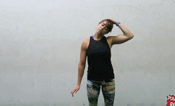 向左右、上下四个方向拉伸颈部后侧的肌肉