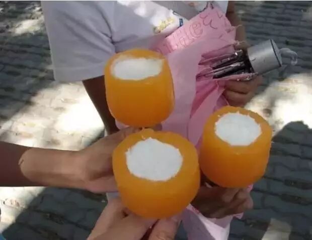 果冻一样的冰棒,刚从冰柜里出来的时候和普通冰棒没什么区别,舔一舔就渐渐软了,果冻一样的质地垂着跟舌头似的,口感超好。