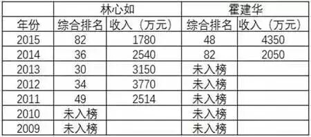 根据福布斯排行榜公布的排名,霍建华的财富总和在林心如之上,看下表↓