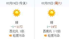 明天晴,最低气温1℃,最高气温14℃。