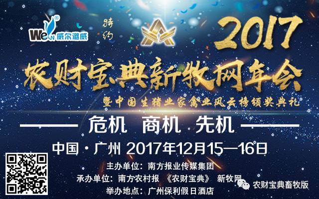 12月15-16日,威尔潞威特约2017农财宝典新牧网年会暨中国生猪业家禽业风云榜颁奖典礼即将在广州保利假日酒店举行。