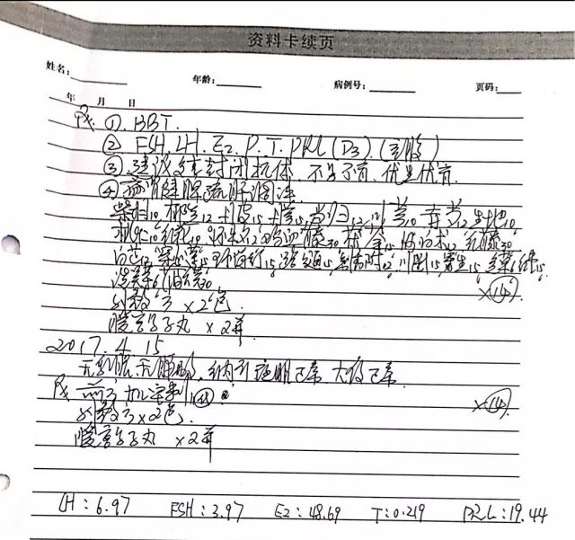 霍菊医生要求患者检测基础体温,并检查激素六项(其中LH:6.97;FSH:3.97;E2:48.69;T:0.219;PRL:19.44),建议封闭抗体,优生优育,同时开出益胃健脾疏肝调体方,配合柴胡、丹皮、鸡血藤、穿心莲等20余味中药,并加上 外敷方、暖宫孕子丸同步进行调治。