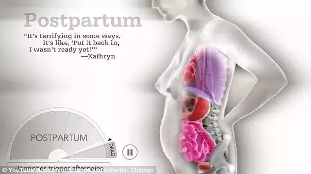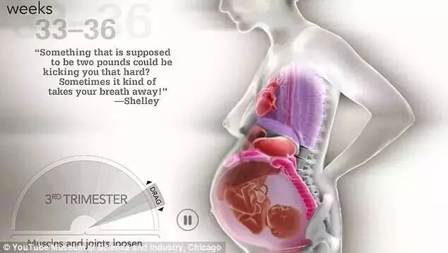 视频展示了从受孕到胎儿出生母亲的变化,器官收到挤压,心脏向左、上、前方移位,胎儿挤压膀胱,出现不适症状。