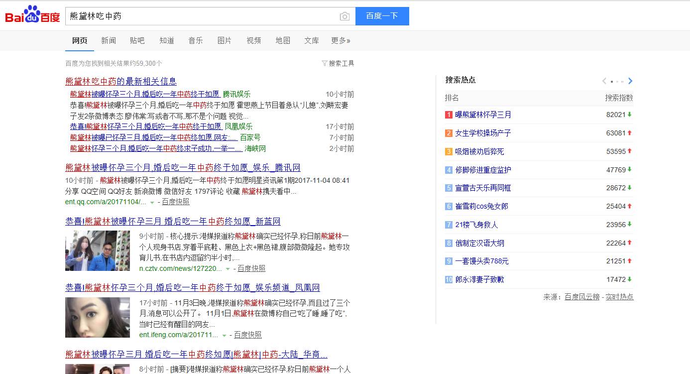 据说据说,熊黛林怀孕靠的是中药诶。在百度输入“熊黛林吃中药”就有59300条相关链接。