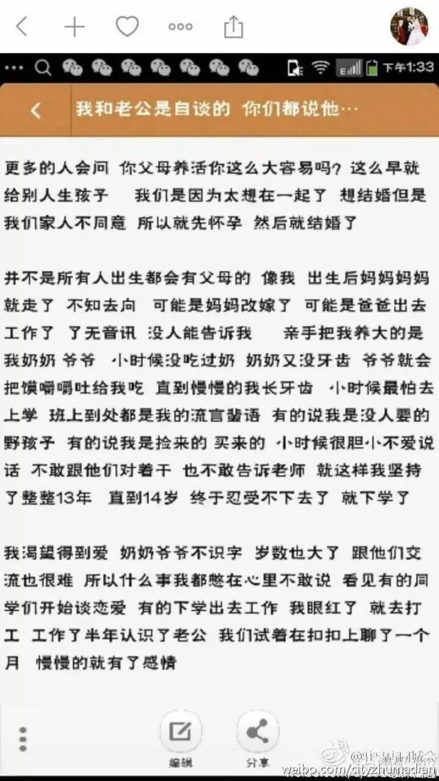 小女孩估计受不了网上的对他们的争议,发表了一篇长文来阐述自己与孩子粑粑的情感历程....