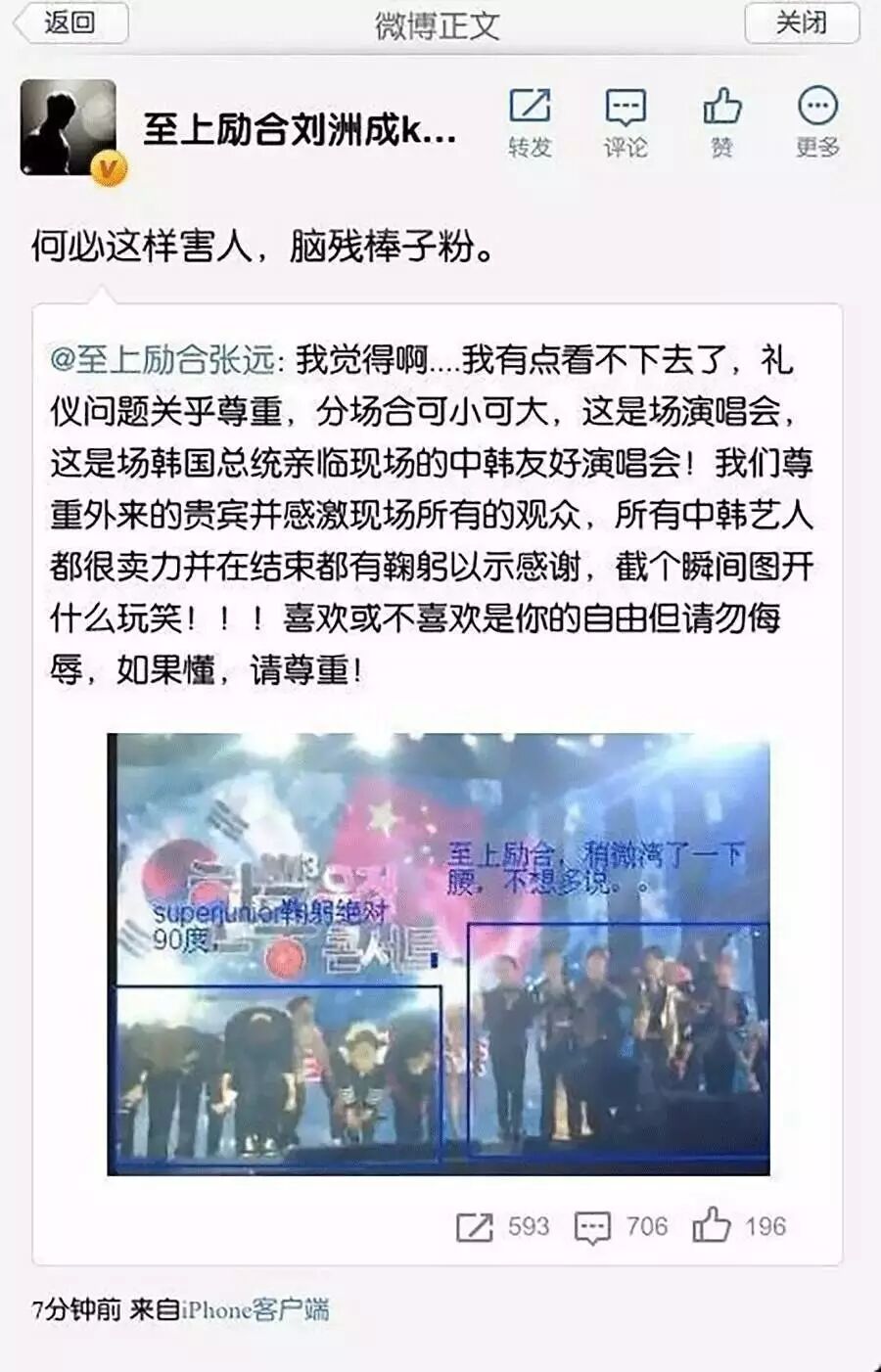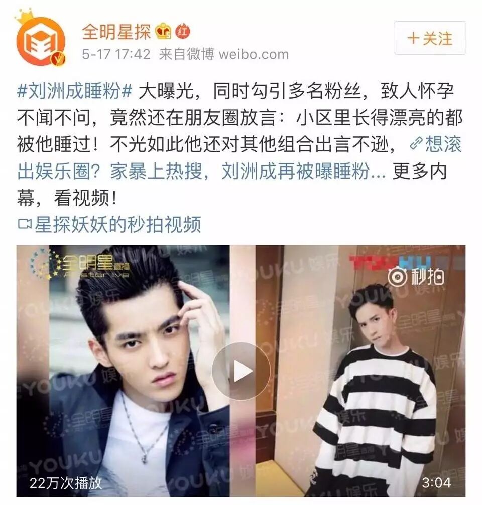 刘洲成一直性格暴躁,曾经在网上公开怒怼粉丝,说韩国组合的粉丝是脑残棒子粉。