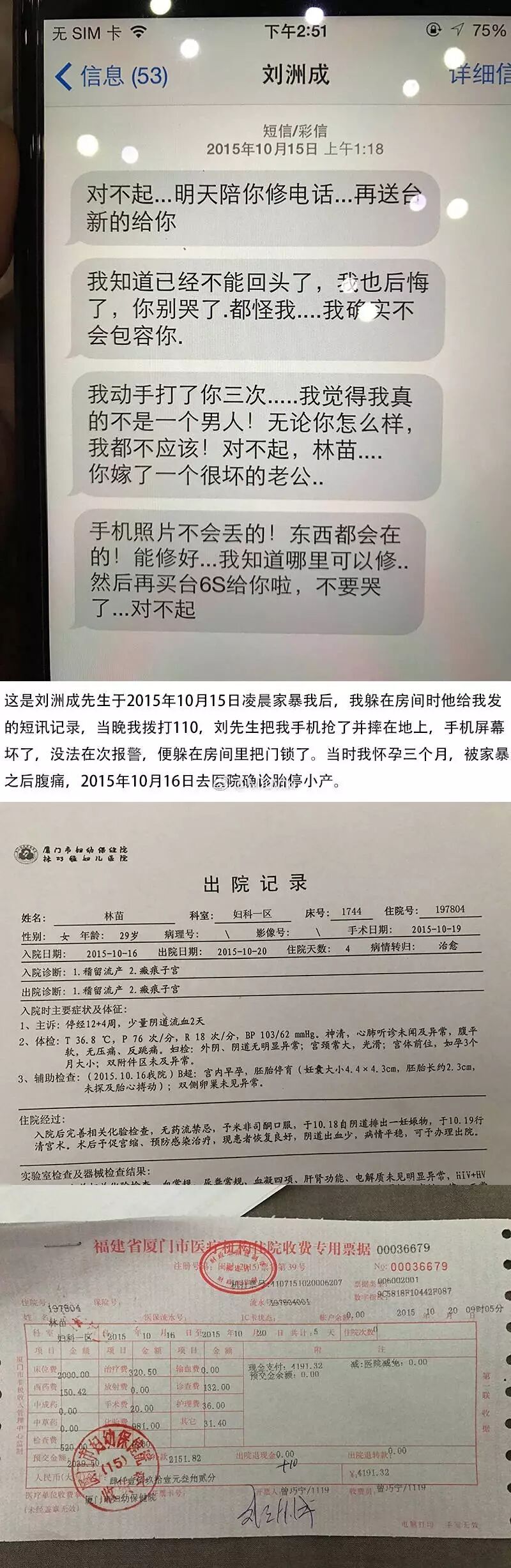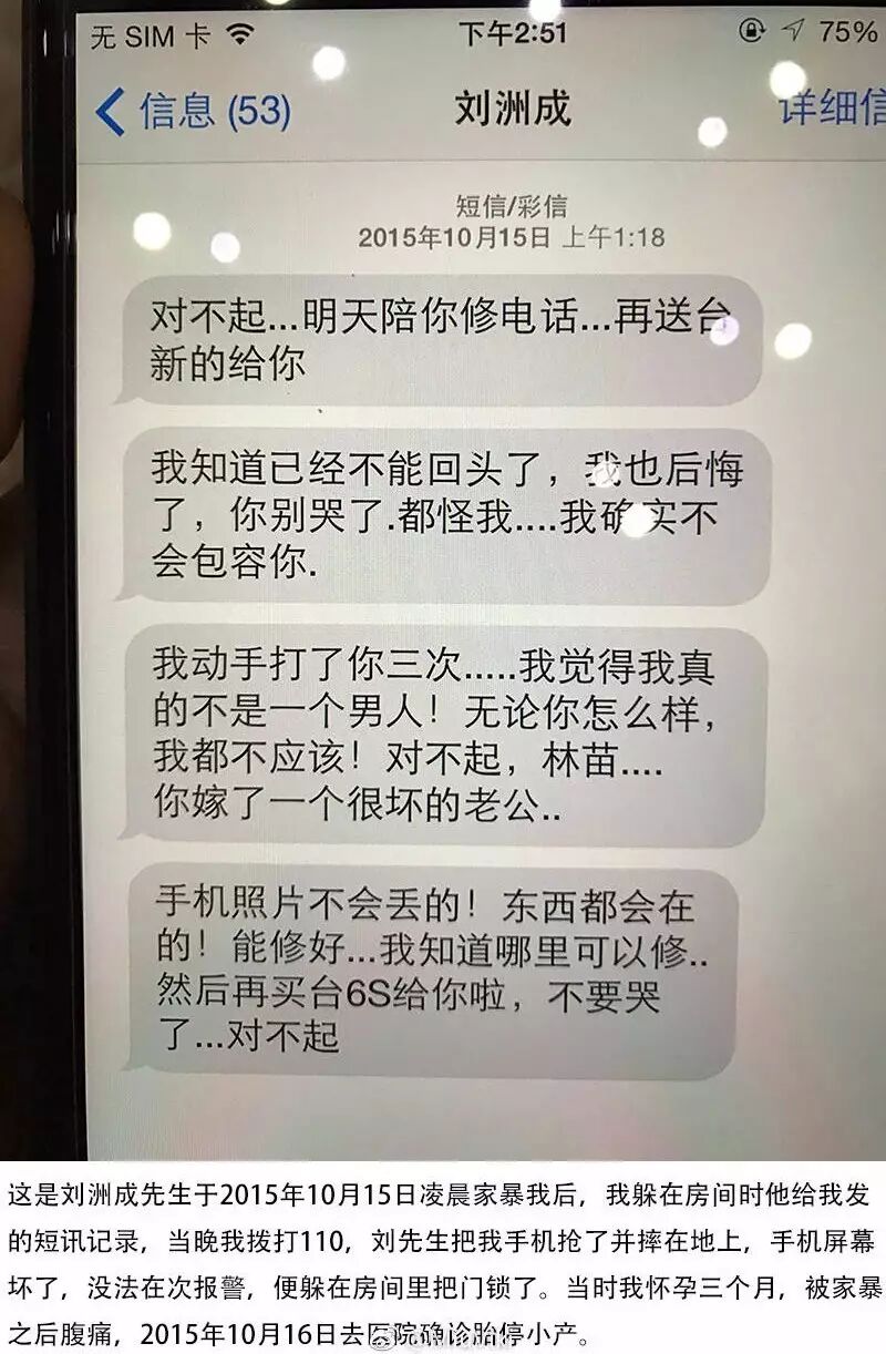 林苗的微博里,还放了那次家暴后,刘洲成向林苗求饶、承诺补偿手机的消息记录,以及医院鉴定流产的诊断。