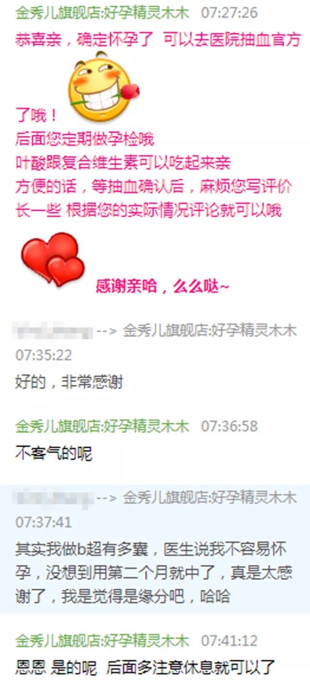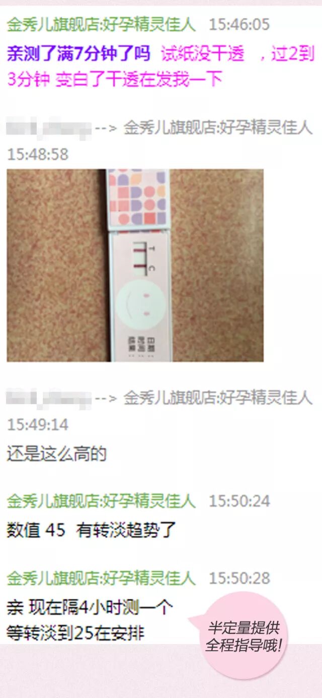 在金秀儿旗舰店“好孕精灵”的指导下使用半定量监测排卵,安排同房。12月11号反馈说已经测到好孕啦!恭喜,祝福!