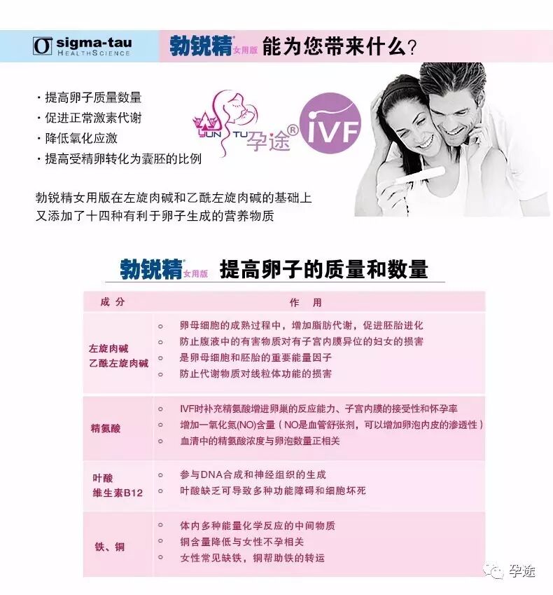 服用勃锐精女用版后提供的能量,能显著提高优质卵子的数量,并使得受精卵更加充分的卵裂,形成更加优质的胚胎,大大提高怀孕成功率。
