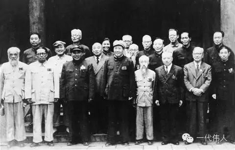 资料图:1949年,全国政协筹备会常委合影,毛泽东后左为马寅初