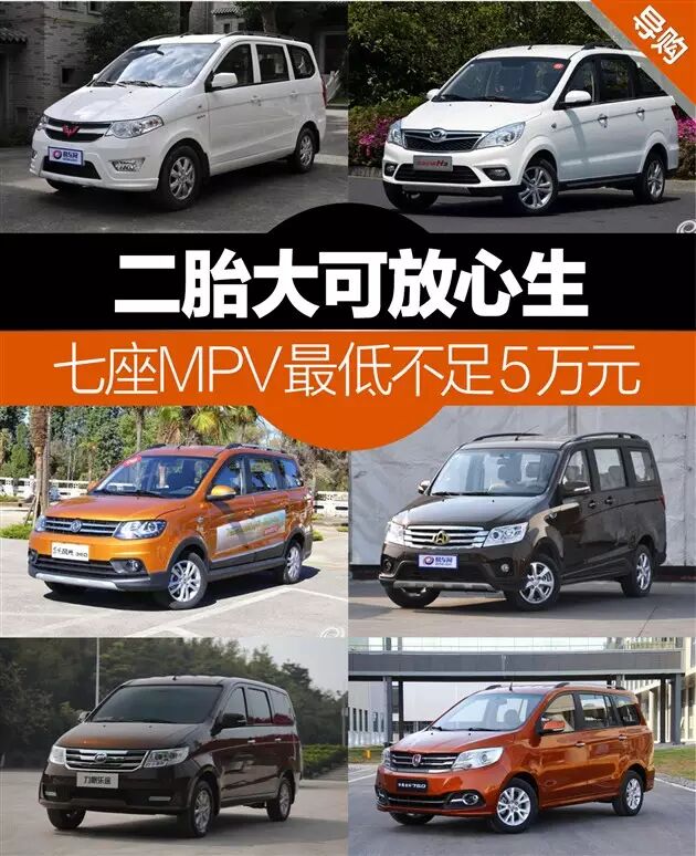 课本里教育我们要少生孩子多种树,而现实则告诉我们要生孩子多挣钱。而准二胎家庭就没有省钱的方法了吗?易车不教你如何生,但会教你如何省。省到即是赚到!最低售价不足5万元的大空间7座MPV车型尽在这里,省钱、赚钱、二胎的速速看过来!