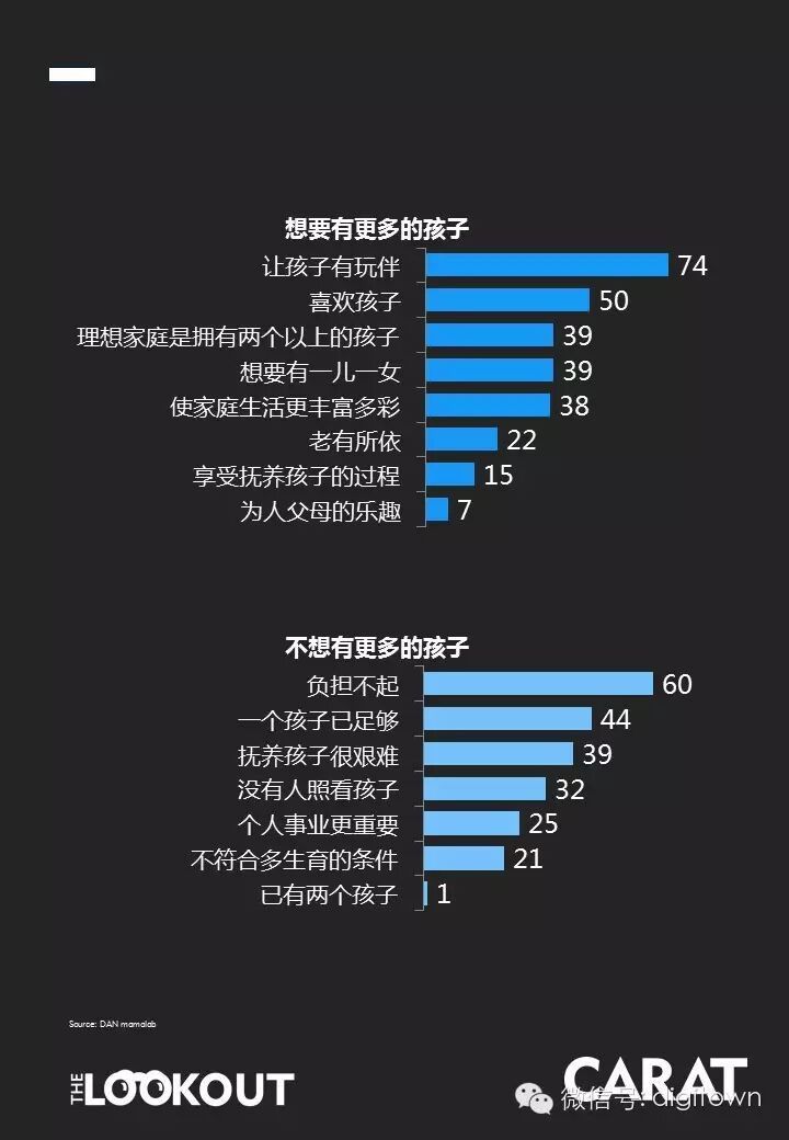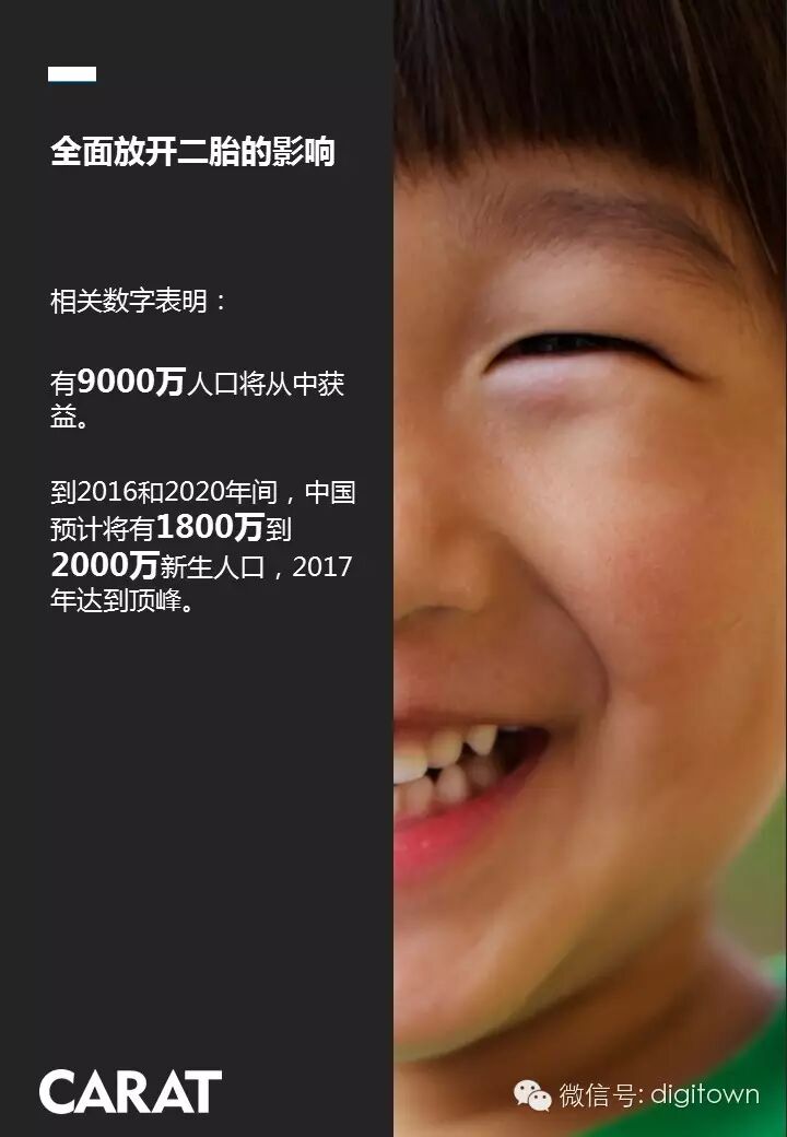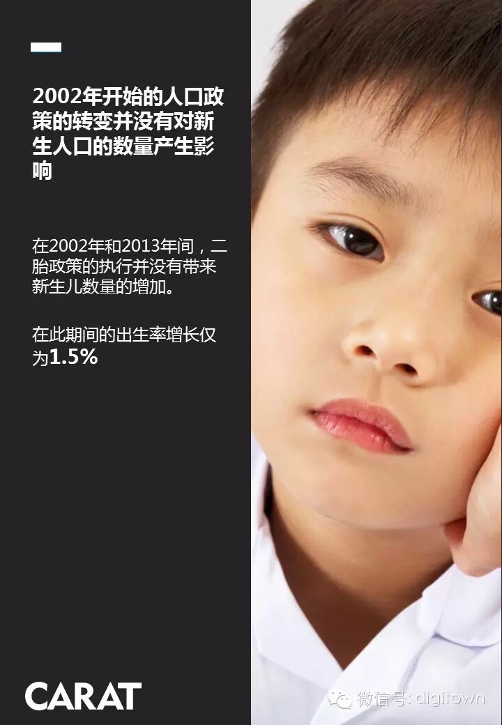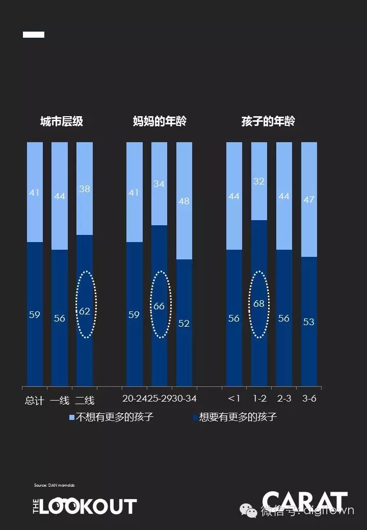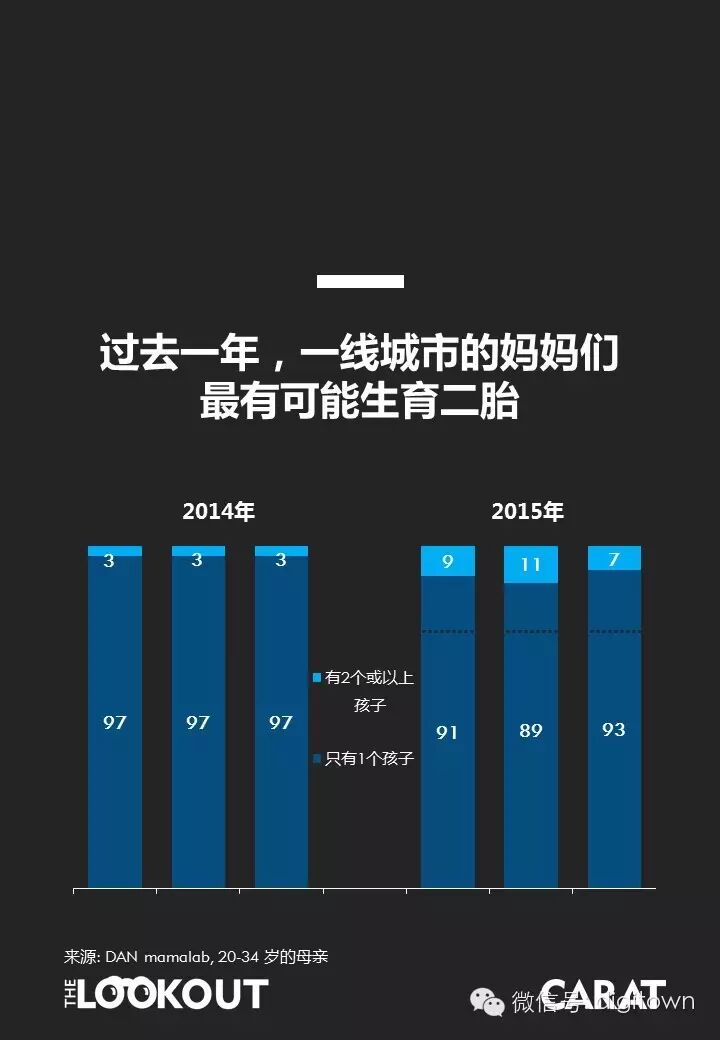 全球领先的整合媒体传播代理商凯络近期发布《中国二胎政策及其影响》报告,对1949年演变至今的人口政策进行梳理,阐明在人口老龄化问题日益凸显的背景下,2002年开始的人口政策的转变并没有对中国新生人口的数量产生影响。报告着重通过数据分析了城市层级、妈妈的年龄、现有孩子的年龄等因素和是否想要生育更多的孩子之间的关联,表明二线城市年龄在25-29岁,有一个1-2岁的孩子的妈妈们,生育二胎的意愿最强烈。