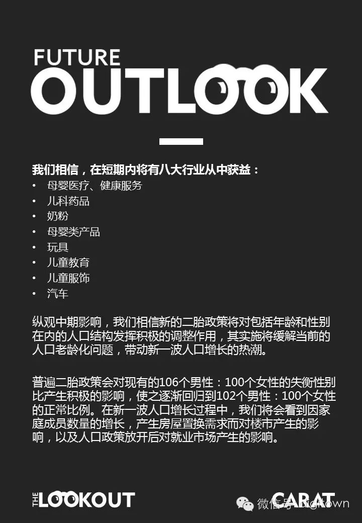 综观其影响,凯络认为全面放开的二胎政策将在短期内对一些行业产生立竿见影的影响,使之从中获益,而中期将对包括年龄和性别在内的中国人口结构发挥积极的调整作用,缓解当前的人口老龄化问题,带动新一波的人口增长,由此激发新一轮的投资和消费热潮。