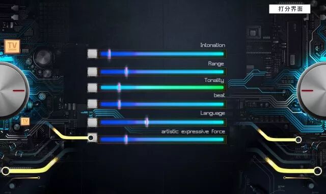 在前期就输入大量音乐专业知识,智能“小渴”的原生属性可以根据现场选手的歌声以不同音色、音域等,通过六个不同小球的旋转和特效演绎对其进行分析打分,形成科学智能的打分系统。表演属性上,“小渴”可以演绎不同背景情绪的需要,悠扬的、抒情的、清新的、时尚的、动感的、摇滚的,不同背景的动态效果来配合实际舞美效果。