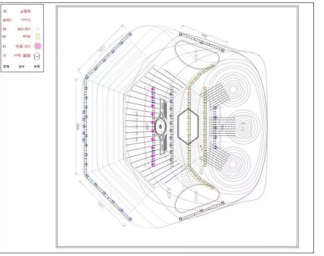 这是一档为梦想助力的竞演节目,整档节目灯光就以暖色调为基础,给人活力、光明与喜悦的感觉。以“歌咏亭”为中心,灯光设计在灯位布置上,呈放射性安装灯具,并因着每首歌的音乐主题变幻灯光效果。