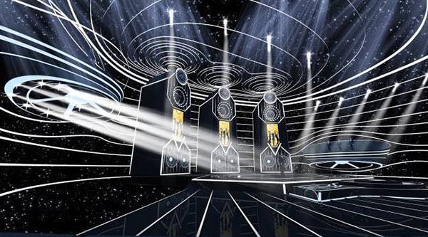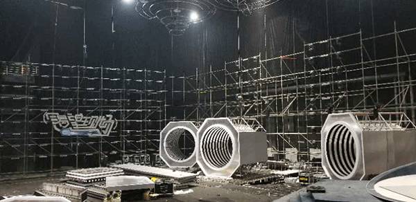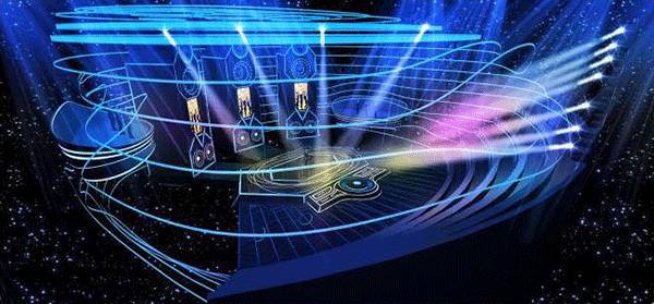 2000平米的演播室里宽4米高10米的巨型音箱被4000米长的LED可编程声波线圈包裹。线圈可以根据现场情况进行各种编程变化,增加视觉效果。音箱下面高3.5米的大门升起,里面再推出数字化控制的mini音乐盒子。为了完美的收音效果,盒子里面被吸音海绵全部包裹之后又加装了灯光效果,使选手开门出场的瞬间更加有仪式感。
