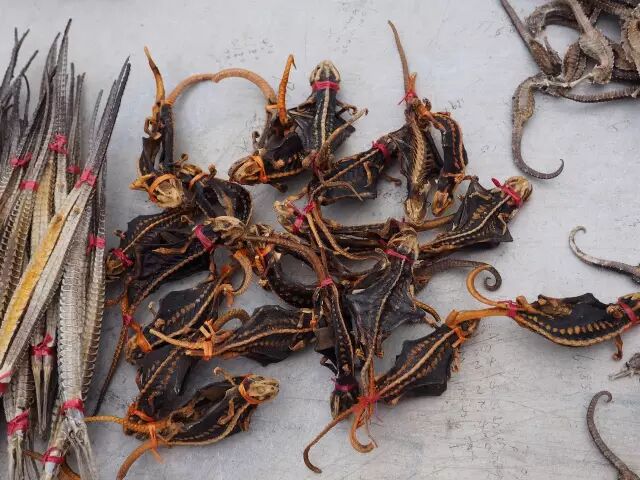 海龙(左)、红瘰疣螈(中)、海马(右上)由于中医所提的神奇药效而陷入濒危境地。图片:张小蜂