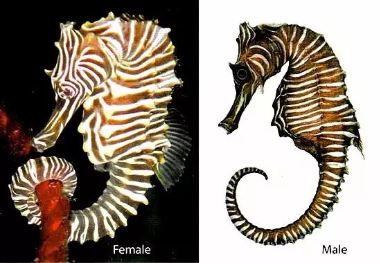 雌雄海马身上的斑纹略有不同。图片:fishesofaustralia.net.au
