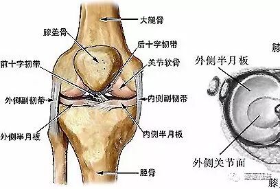 (图上的“膝盖骨”即髌骨,本来应该处于膝盖正中间的那块小骨头,在这次扭伤以后,它整个儿跑到右膝盖外侧去了。)
