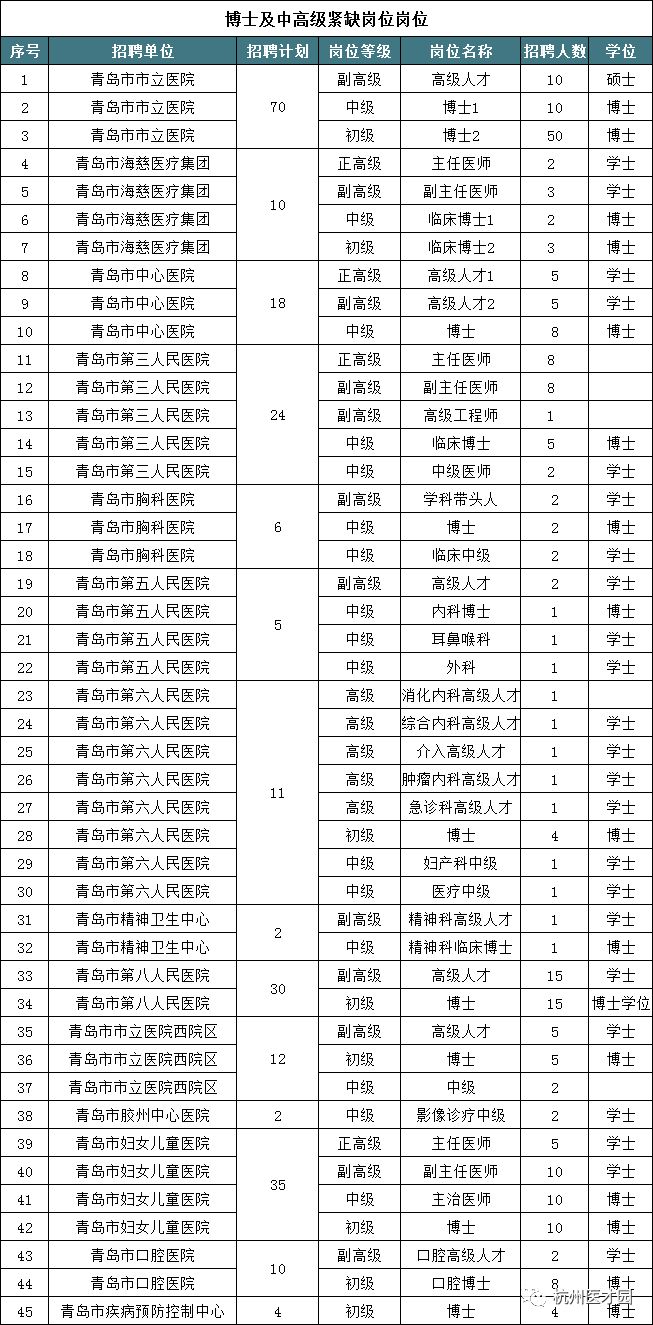 1. 2018年青岛市卫生和计划生育委员会直属公立医院及部分事业单位公开招聘工作人员计划表(博士和中高级紧缺岗位)