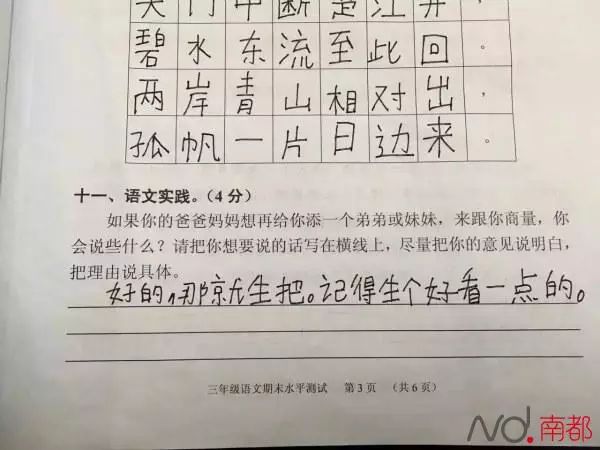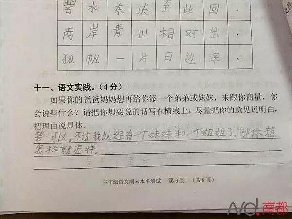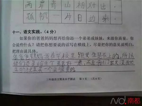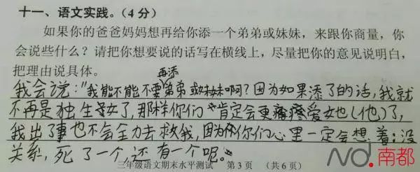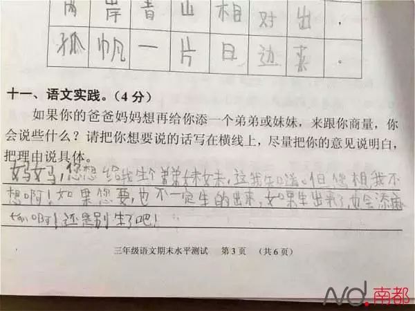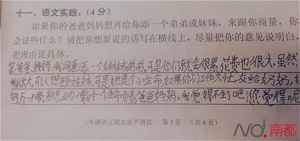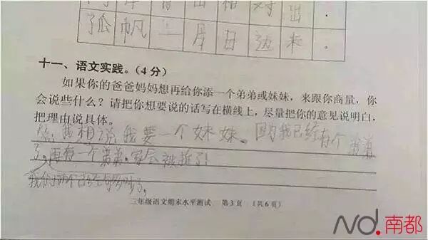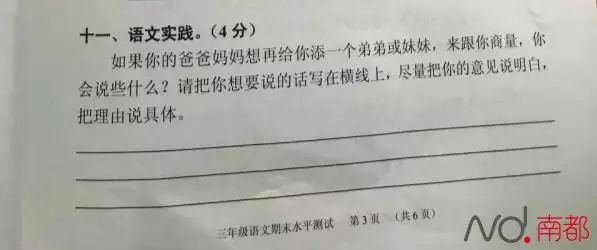 “如果你的爸爸妈妈想再给你添一个弟弟或妹妹,来跟你商量,你会说些什么?”