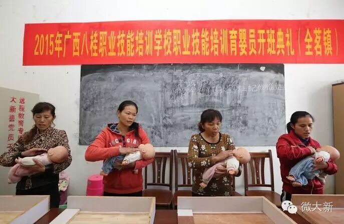 就在昨日,大新县全茗镇顿周村参加育婴员培训的50名学员参加毕业考试。2014年以来,随着我国开放二胎政策的出台,当一名“月嫂”成为我县农村妇女和下岗女工最热衷的职业。截止今年11月2日,2014以来,我县共举办育婴员培训班10期,培训学员达500名,就业率达100%。