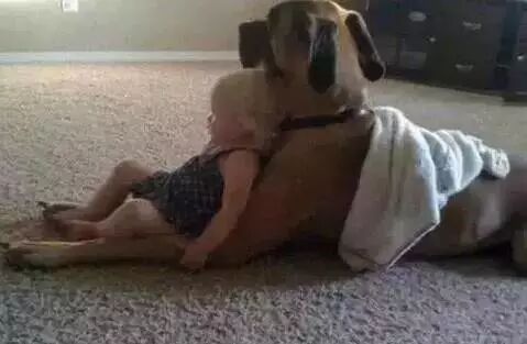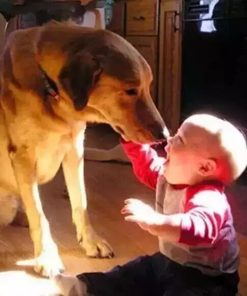 5.当宠物狗待在宝宝身边的时候,请爸妈不要紧张着急,不要盲目的担心狗狗可能会伤害它。