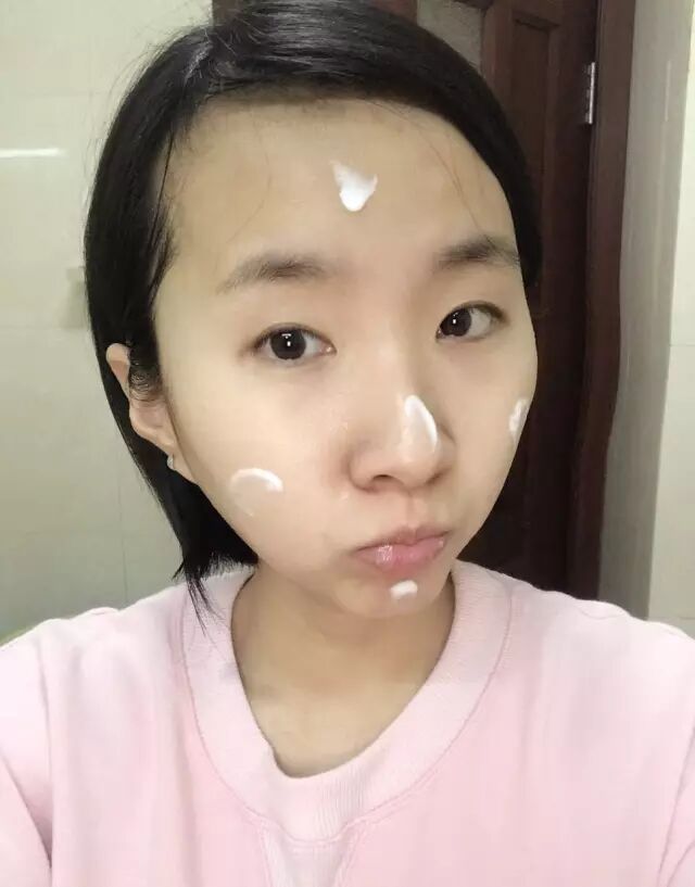 上脸啦~额头一点,脸颊一点,鼻子一点,下巴一点。