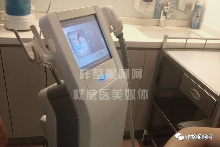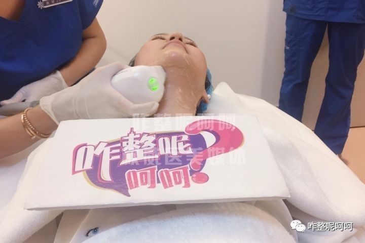 躺在床上之后,助理医师先在呵呵的脸上涂一层耦合剂,耦合剂可以起到防止烫伤润滑的作用,冰冰凉凉的,呵呵说感觉非常舒服。然后赵医生就开始操作了,一开始呵呵还怕的要死,但是开始做之后她完全没什么感觉,直到过了两三分钟后,她的脸上才开始感到热度,呵呵说有一股螺旋上升很舒服的感觉。但其实表皮的温度并不高,主要温度都聚集到真皮层下。