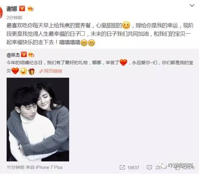 随即谢娜更是转发微博写道:最喜欢吃你每天早上给我煮的营养餐,心里甜甜的,嫁给你是我的幸运,现阶段更是我觉得人生最幸福的日子?,未来的日子我们共同加油,和我们的宝贝一起幸福快乐的走下去!嘻嘻嘻嘻