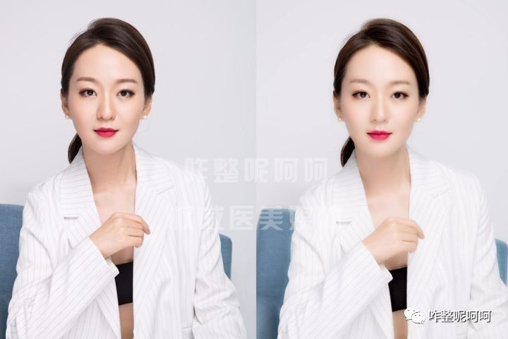做完半边左右脸对比(这照片我都不敢给她看