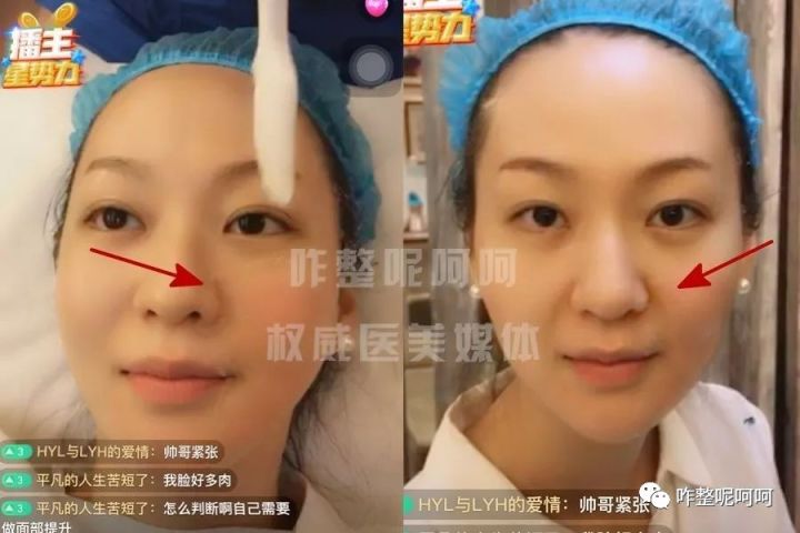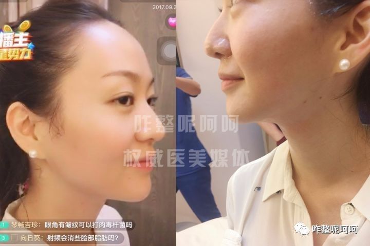 做完半边脸后呵呵坐起来看对比,看到镜子里的自己后简直惊呆,左半边脸(箭头指处)的法令纹明显的淡化,以至于她在聊天时不时的会看一下镜子。