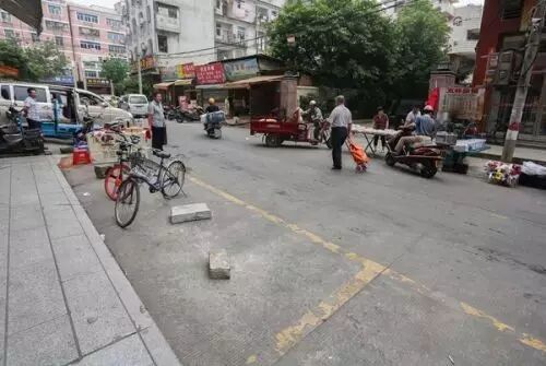 8.“霸道”石头抢车位 “自私”摊位堵过道
