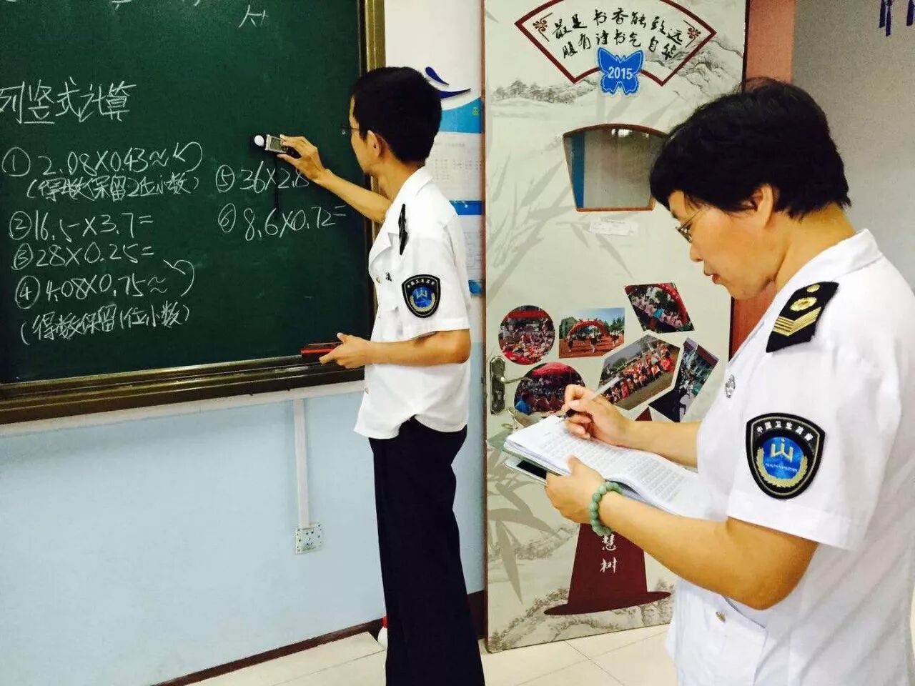 依据《学校卫生综合评价》和《2017年全省学校卫生专项监督检查工作实施方案》的要求,对学校教学环境中的教室采光窗地比(窗的透光面积与室内地面面积之比)、教室照明、黑板情况、课桌椅情况等项目开展快速监测。检查中发现,大部分教室项目均符合要求,但个别教室存在如课桌椅高度不符合学生身高标准,黑板面照度、课桌面照度等不符合国家标准的情况。针对存在的问题,监督人员当场下达了《卫生监督意见书》,督促学校认真整改。