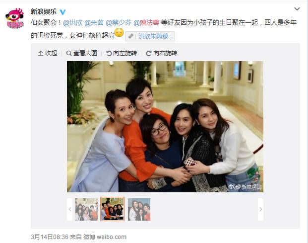紫霞仙子朱茵,她除了有个爱她宠她的老公外,还有一个情谊深厚的闺蜜团“香港F4”,其中成员分别是:朱茵,蔡少芬,陈法蓉,洪欣。